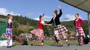 This gentle, flowing dance was created solely for the female dancers at the Aboyne Highland Games, which disallows female competitors from wearing the kilt. The Aboyne dress is a shortened style of popular 17th century Highland dress, which used a sett of plaid with white known as arasaid. Male dancers are permitted to wear the kilt.