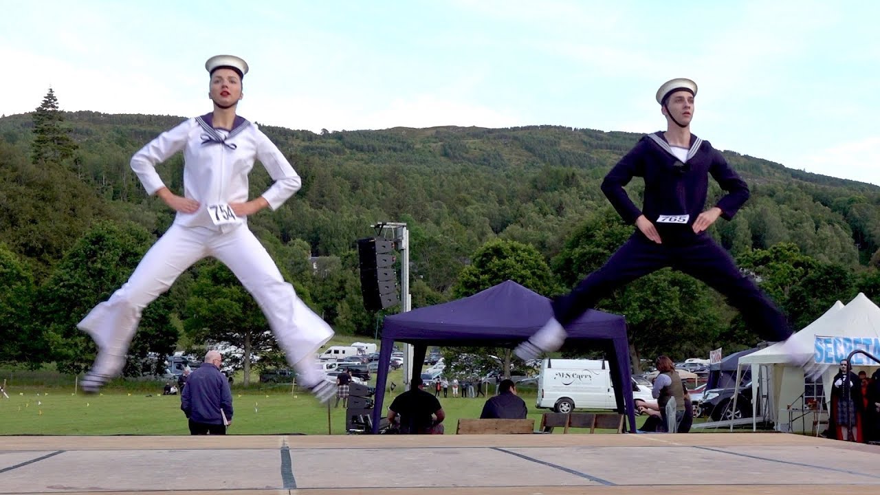 The hornpipe is a national dance in which competitors wear the dress of the Royal Navy. The dance depicts sailors performing their daily routines on board ship.
