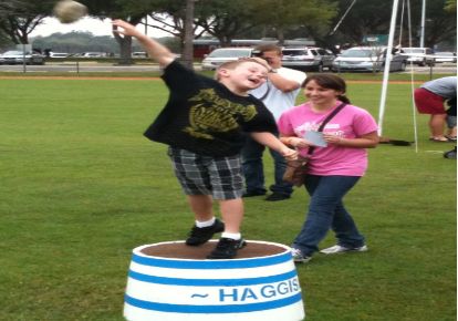The Kids' Games are a venue for children ages 1-12 that provide an opportunity of fun and learning for your lads and lasses. Kids get to experience our version of Scottish popular games in a non-competitive atmosphere. The Kids Games are open from 9am to 4pm each day. At the entrance to the Kid’s Games area they may pick up a description of all the fun things to do! How about trying your hand at Arts & Crafts, Caber Toss, Haggis Hurl, Sheaf Toss or Tug o' War. Kids may also participate in kid-sized versions of Scotland’s favorite sports--golf and soccer. The barnyard sheep and Heilan’ Coo’s are for picture taking only (no riding or sitting please).