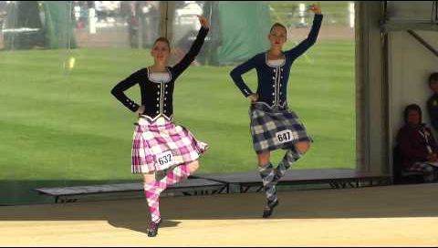 This gentle, flowing dance was created solely for the female dancers at the Aboyne Highland Games, which disallows female competitors from wearing the kilt. The Aboyne dress is a shortened style of popular 17th century Highland dress, which used a sett of plaid with white known as arasaid. Male dancers are permitted to wear the kilt.