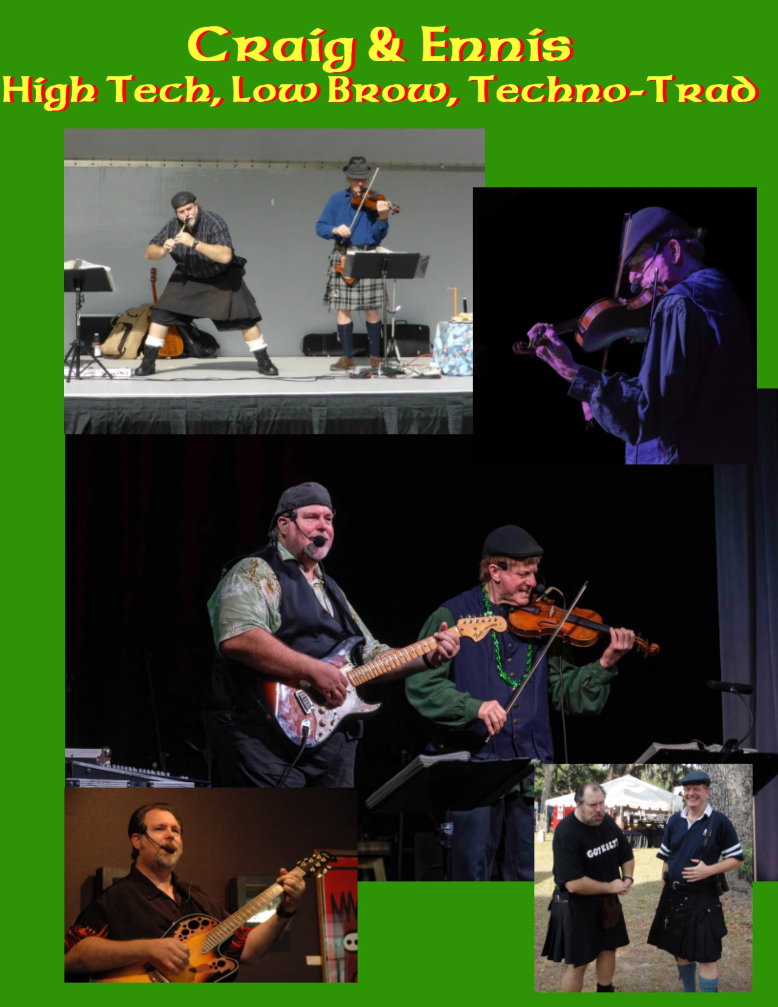 Scottish songs & tunes, as well as a few favorites from other celtic lands. Traditional songs and instruments meet high tech electronics – electric meets acoustic -- TechnoTrad. Flute, whistle, fiddle, mandolin, bodhran, guitar. Full blown harmonies, breakneck jigs & reels, and songs about battles, murders, drinking, womanizing, cattle reiving, swordfighting, and then drinking agin. And the NEXT song is about....